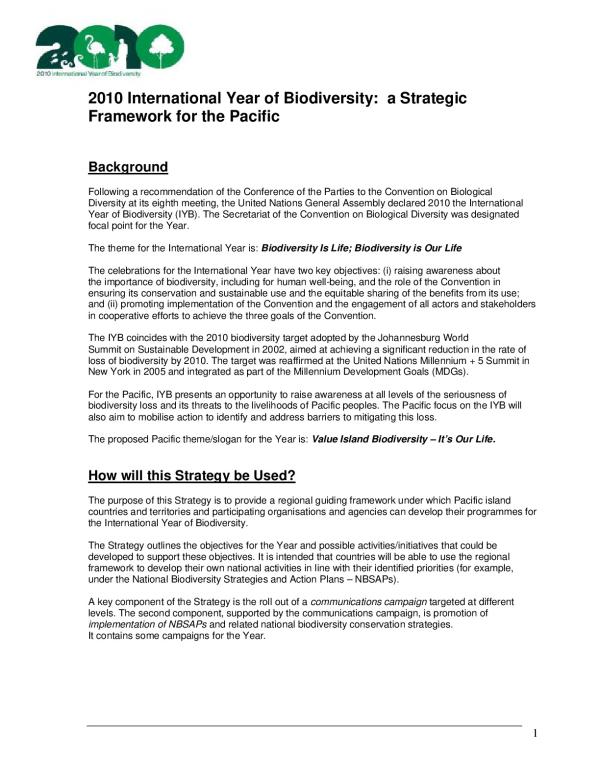 Conference of the Parties to the Convention on Biological Diversity at its eighth meeting, the United Nations General Assembly declared 2010 the International Year of Biodiversity (IYB). The Secretariat of the Convention on Biological Diversity was designated focal point for the Year.