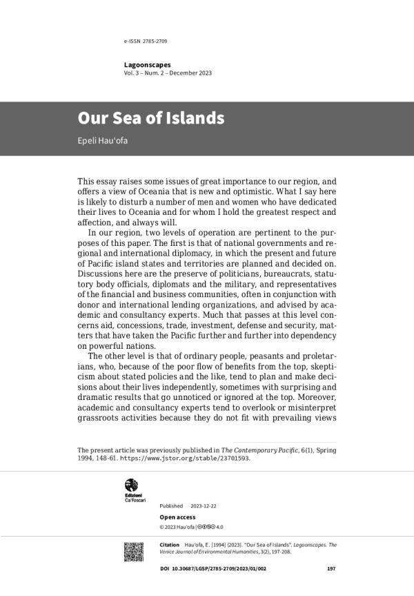 In our region, two levels of operation are pertinent to the purposes of this paper. The first is that of national governments and regional and international diplomacy, in which the present and future of Pacific island states and territories are planned and decided on. Discussions here are the preserve of politicians, bureaucrats, statutory body officials, diplomats and the military, and representatives of the financial and business communities, often in conjunction with donor and international lending organizations, and advised by academic and consultancy experts.