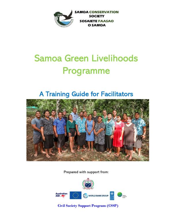 The Green Livelihoods project is being led by Samoa Conservation Society (SCS) with funding from the Civil Society Support Programme (CSSP). It has two objectives that are closely related to Samoa: 1. to raise awareness amongst youths of Samoa's environment of the range of threats facing it and how to manage these environmental threat. 2. to promote and demonstrate Green livelihood options amongst youth