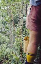 Mist netting Rarotonga flycatcher. Hugh Robertson peg & rat poison station near rain gauge, April 1999